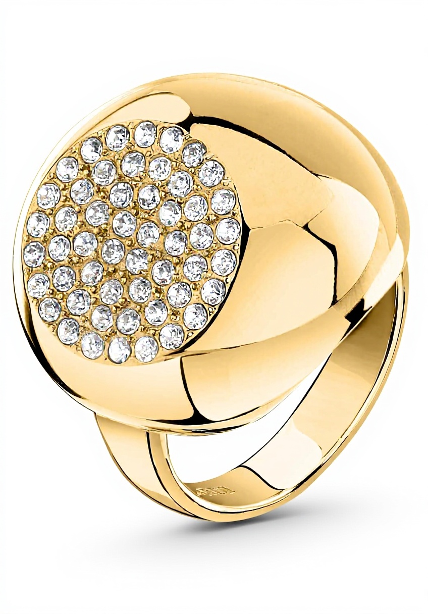 L’anello è realizzato in acciaio di alta qualità e decorato con cristalli, garantendo resistenza e brillantezza nel tempo.