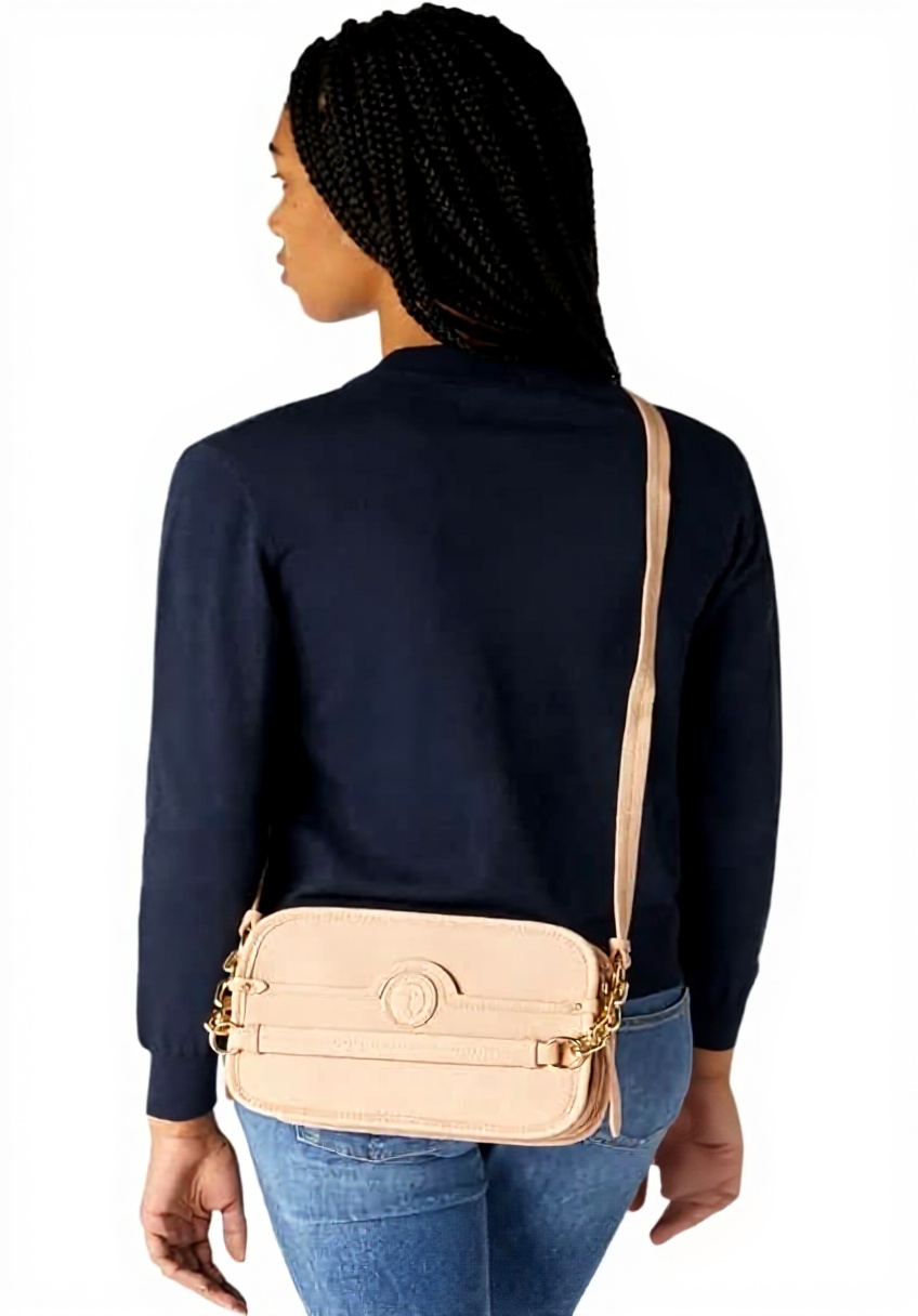 Questa borsa presenta un modello compatto, adatto per contenere oggetti essenziali come portafoglio, smartphone e chiavi. Il materiale esterno in poliuretano full grain offre leggerezza e facilità di manutenzione, mentre il colore rosa cammeo aggiunge un tocco femminile. Il riferimento produttore è 75B013279Y099997, garantendo autenticità e qualità del brand.
