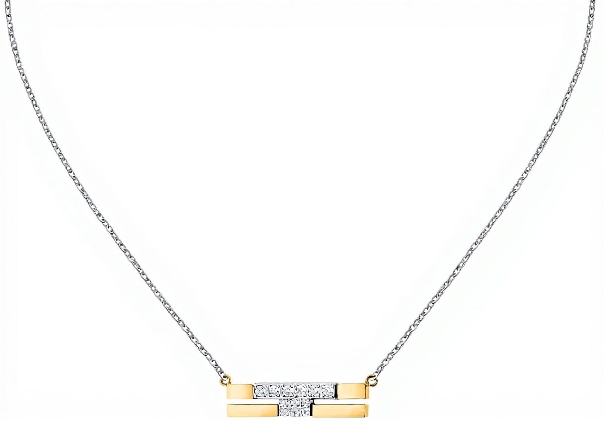 La collana è realizzata in acciaio inossidabile e zirconi, garantendo resistenza alla ruggine e una lucentezza duratura nel tempo.