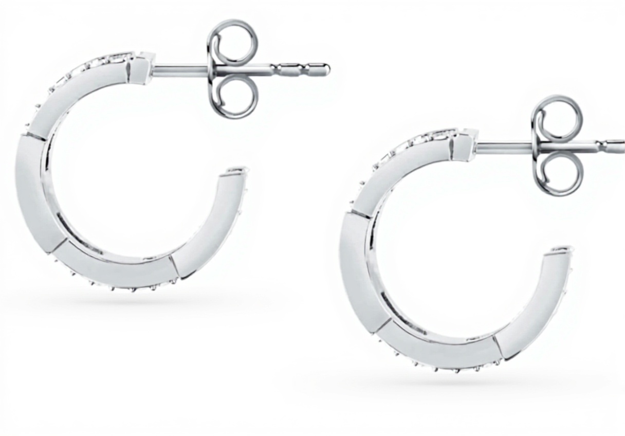 Gli orecchini sono realizzati in acciaio con inserti di cristalli, garantendo luminosità e resistenza all’usura.