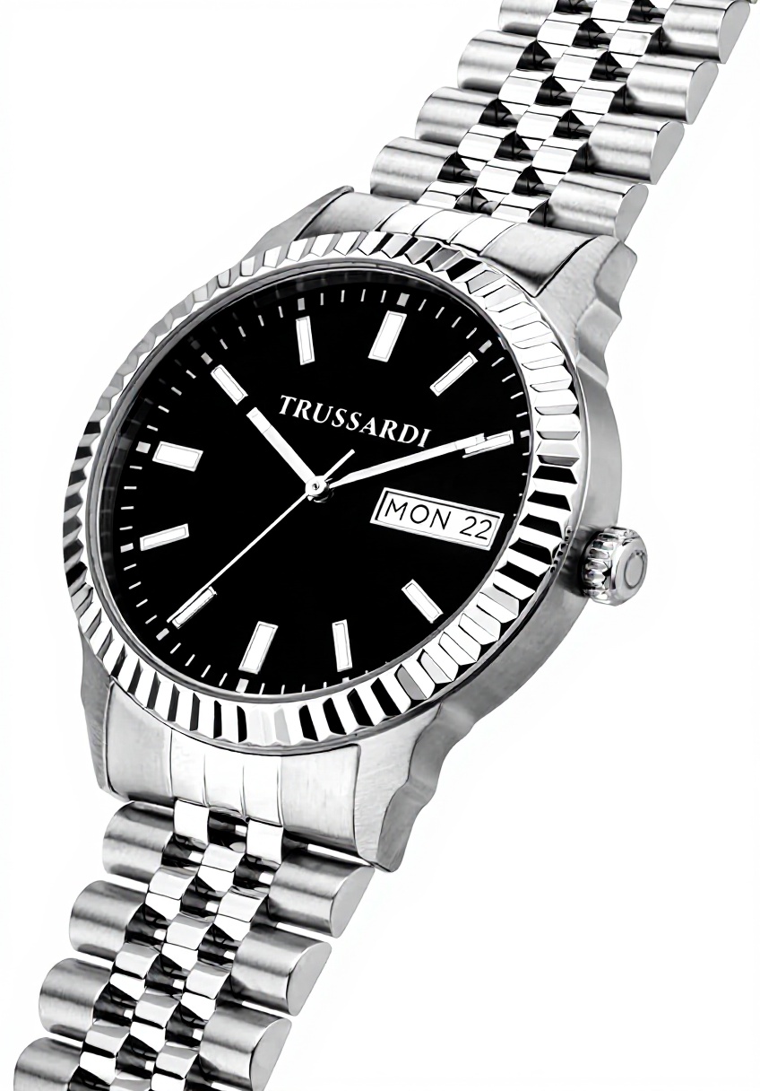 L’orologio Trussardi uomo della collezione T-BENT combina un design contemporaneo con materiali di alta qualità. Dotato di movimento al quarzo per precisione, funzione data e quadrante nero protetto da vetro zaffiro, offre resistenza all’acqua fino a 5 ATM. Il cinturino in acciaio con chiusura a scomparsa garantisce comfort e sicurezza.