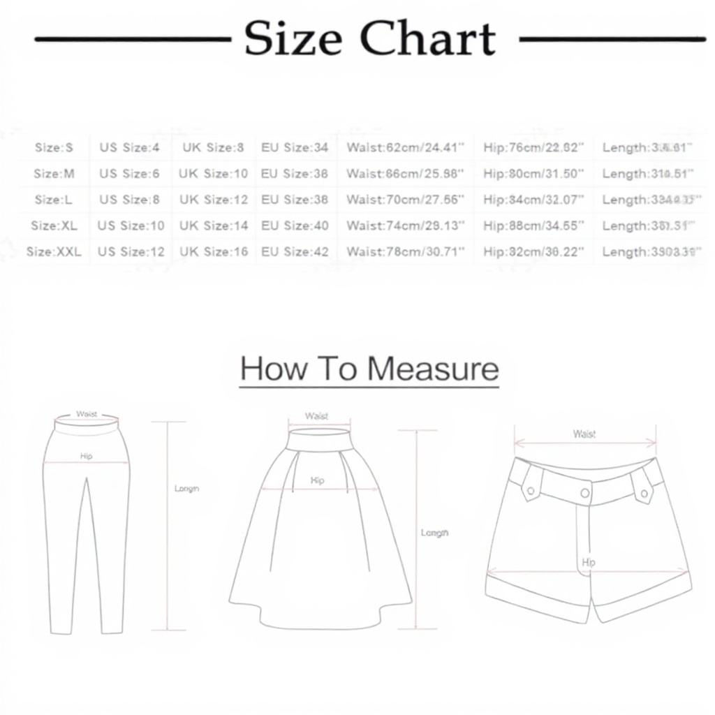 I pantaloncini sono disponibili in taglie standard, con una vestibilità normale che esalta le curve. Realizzati in materiale Spandex blend, garantiscono traspirabilità e leggerezza. Il modello include tasche funzionali e una schiena arricciata per un look accattivante. Si consiglia di consultare la tabella delle taglie per la scelta corretta.