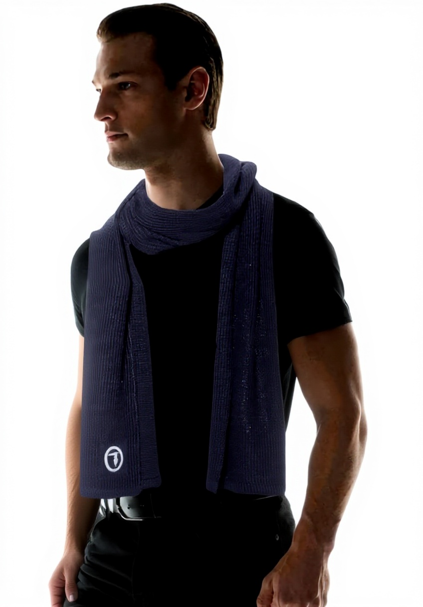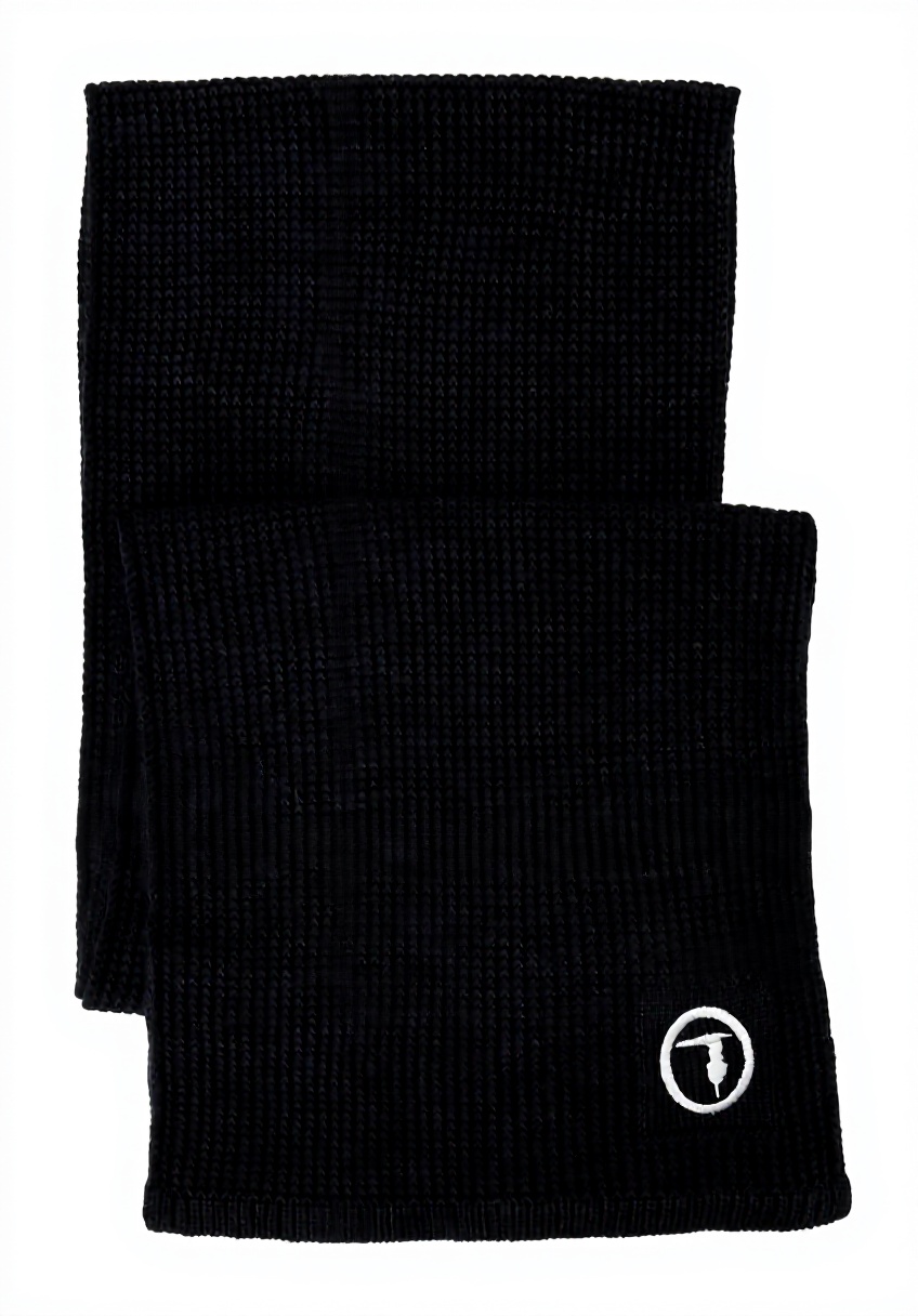 La sciarpa Trussardi presenta un design a costine che aggiunge texture e carattere, realizzata con materiali di qualità per garantire durata e comfort. La combinazione di colori blu e bianco offre un look fresco e versatile, ideale per diverse occasioni.
